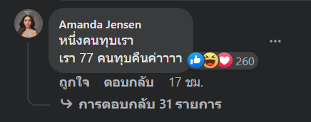 ขณะเดียวกันด้าน ไฮดี้ อมันดา เจนเซ่น มิสแกรนด์ภูเก็ต 2565 หนึ่งในผู้เข้าประกวด มิสแกรนด์ไทยแลนด์ ขณะนี้ ก็ได้เข้ามาคอมเมนต์ใต้โพสต์ดังกล่าวด้วยเช่นกัน โดยบอกว่า ‘หนึ่งคนทุบเรา เรา 77 คนทุบคืนค่ะ’
