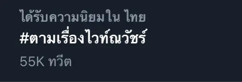 ล่าสุด #ตามเรื่องไวท์ณวัชร์ ขึ้นเทรนด์ทวิตเตอร์ หลังเรื่องค่อนข้างเงียบหายไป โดยชาวเน็ตต่างให้ความสนใจกับเรื่องนี้เป็นจำนวนมาก อีกทั้งยังวอนสังคมอย่าปล่อยเรื่องนี้ให้ลอยนวล