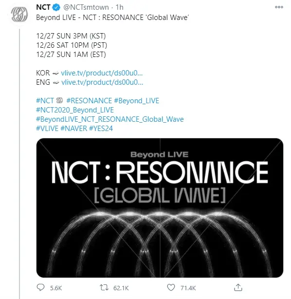 โดยคอนเสิร์ตจะมีจัดขึ้นในวันที่ 27 ธันวาคม เวลา 13.00 น. ไทย ทางแอดพลิเคชั่น vlive สามารถดูรายละเอียดเพิ่มเติมได้ที่ทวิตเตอร์ NCT หรือเฟซบุ๊ค NCT