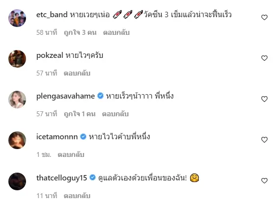 งานนี้ทำเอาเจ้าตัวต้องกักตัวอยู่ที่สมุยยาว ๆ หลังจากที่ลงไปทำงาน พร้อมแคนเซิลคิวงานที่ต่อคิวรอเอาไว้ เจ้าตัวยังได้ขอโทษทุกคนที่เข้ามาใกล้ชิดในช่วง 1 สัปดาห์ที่ผ่านมา พร้อมทั้งย้ำให้ทุกคนมั่นตรวจหาเชื้อ และรักษาสุขภาพให้ปลอดภัย