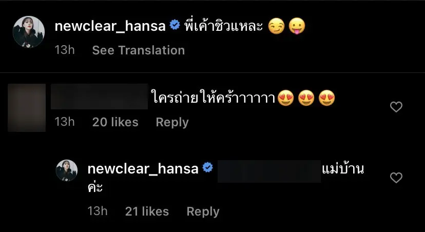 ล่าสุด นิวเคลียร์ ได้มีการโพสต์ภาพที่ถ่ายคู่กับ น้องไทก้า ลงทางอินสตาแกรม พร้อมแคปชั่นว่า พี่เค้าชิวแหละ ซึ่งก็ได้มีแฟนคลับเข้ามาคอมเมนต์ถามว่า ใครถ่ายให้ค้าาา ด้วยความหวังว่า ดีเจเพชรจ้า จะเป็นคนถ่ายให้ งานนี้ นิวเคลียร์ จึงตอบกลับอย่างชัดเจนเลยว่า แม่บ้านค่ะ