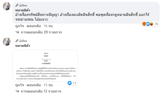“อ้างเรื่องทรัพย์สินทางปัญญา อ้างเรื่องละเมิดลิขสิทธิ์ พอพูดเรื่องกฎหมายลิขสิทธิ์ บอกไร้จรรยาบรรณ โอ้ยเนาะ”