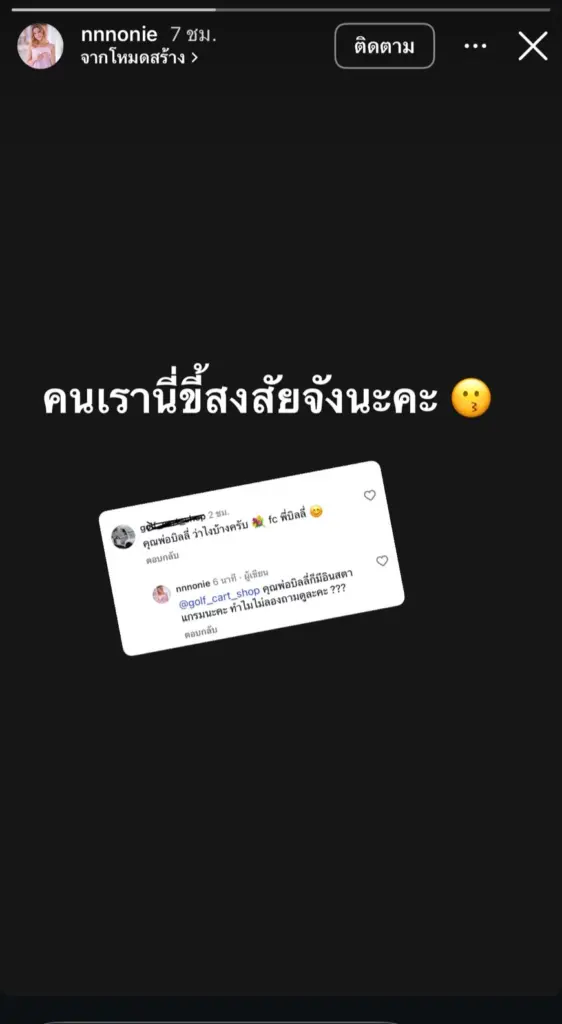 เท่านั้นยังไม่พอ นนี่ยังแคปคอมเมนต์ดังกล่าวไปลงในสตอรี่ พร้อมทิ้งข้อความสั้น ๆ แต่สะดุดใจว่า