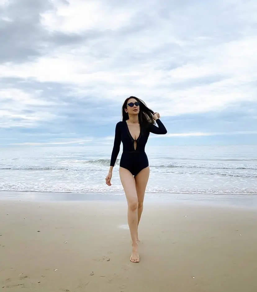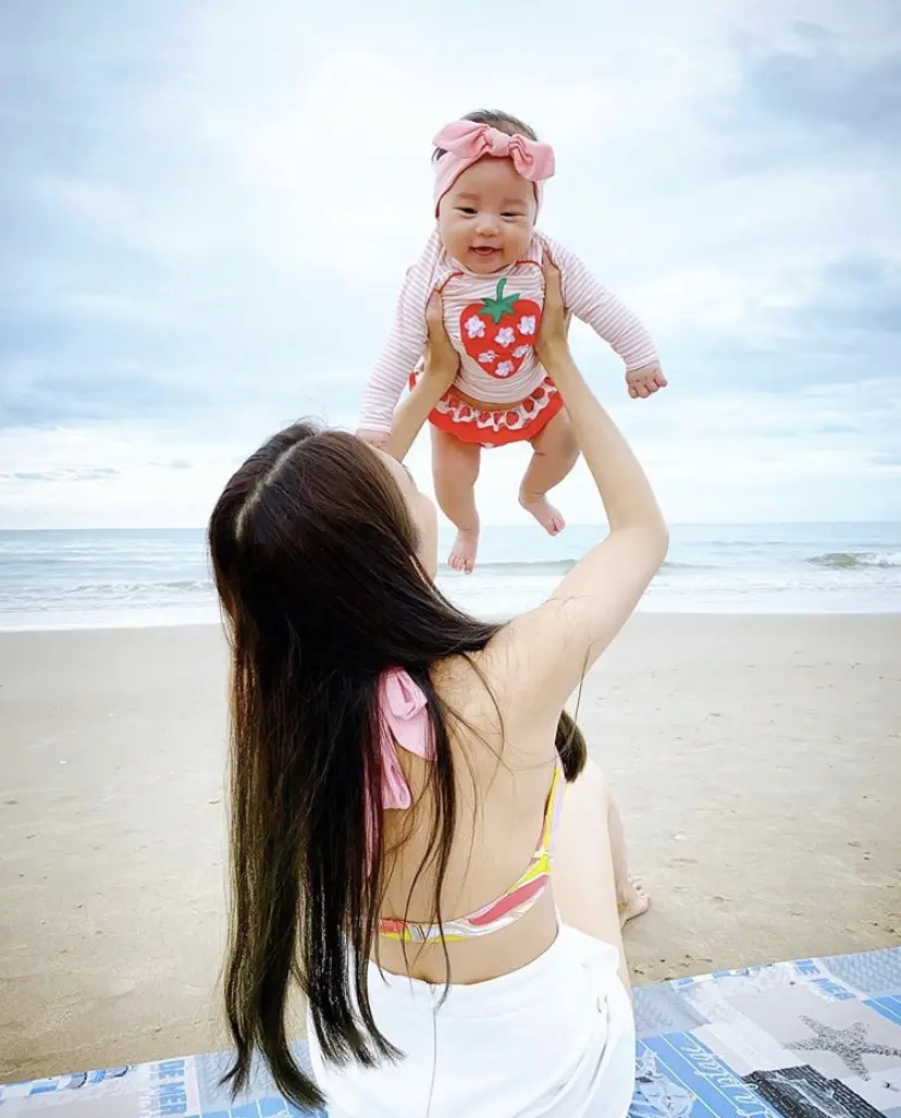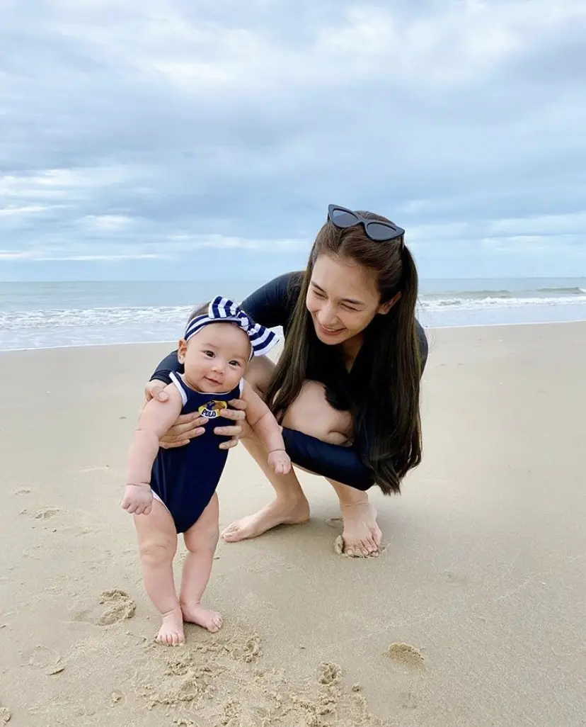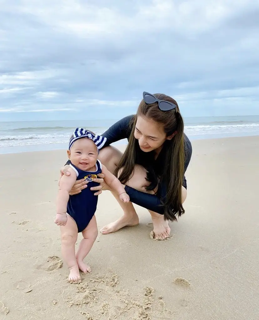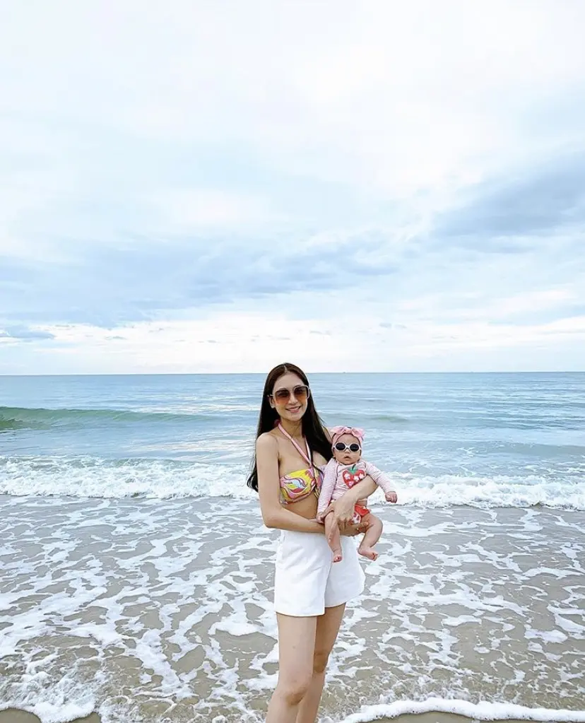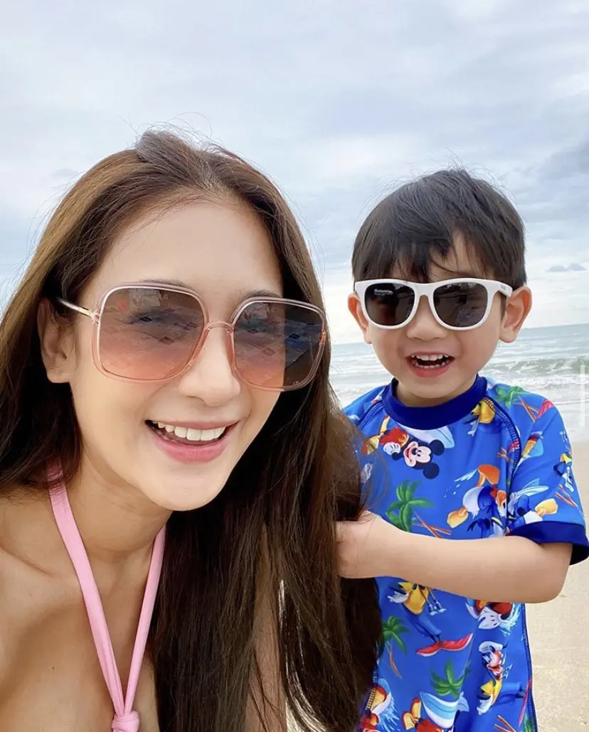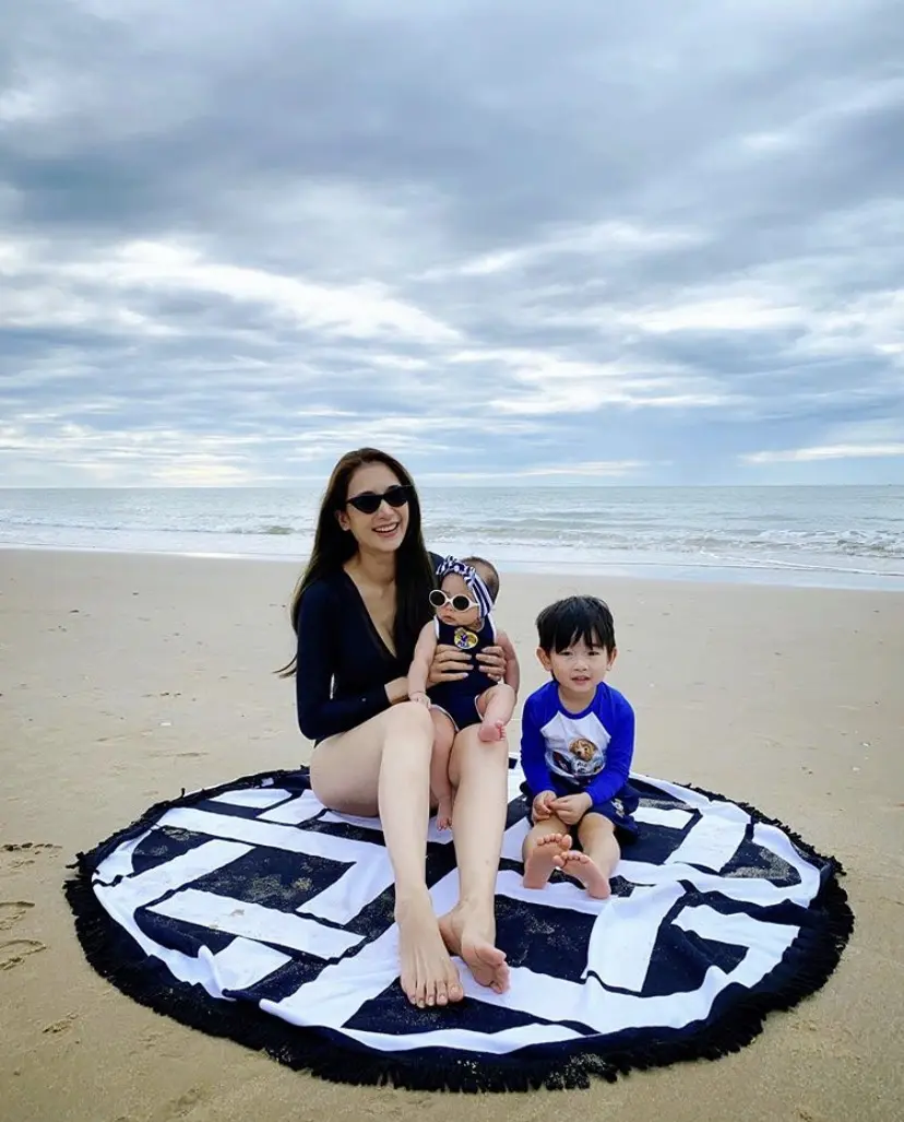 นอกจากนี้คุณแม่เนยก็ยังอวดหุ่นแซ่บ ริมทะเล ดูไม่ออกเลยว่ามีลูกสองคนแล้ว เพราะเจ้าตัวนั้นหุ่นยังฟิตสุดๆ จนน้องอคิณลูกชายคนโตถึงกั้บเอ่ยปากชมว่า “ชอบแม่เวลาแต่งตัวแบบนี้”