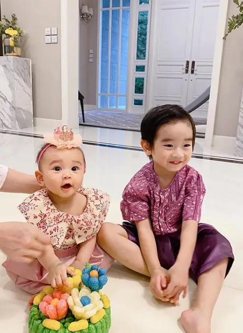 ล่าสุด สาวเนยได้โพสต์ภาพควันหลงจากวันลอยกระทง โชว์รูปน้องอลิณ และน้องลลิณในชุดไทยสีสวย พร้อมเขียนแคปชั่นว่า “ลอย ลอย กระทง ??”