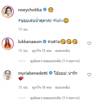ล่าสุด คุณแม่คนสวยก็มาโพสต์รูปน้องลลิณที่กำลังว่ายน้ำอยู่อย่างมีความสุข งานนี้จัดเต็มทั้งหมวก และหวงยางสีชมพูสดใสที่ทำเอาคนเห็นต้องใจละลายกันไปตามๆ กัน โดยมาพร้อมกับแคปชั่นว่า “?#ชอบเล่นน้ำสุดๆค่ะ#lalin?” ซึ่งทันทีที่ลงรูป ทั้งแฟนคลับ และเหล่าเพื่อนในวงการก็ต่างพากันมาคอมเมนต์หวีดความน่ารักของน้องลลิณกันยกใหญ่