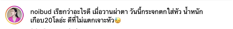 “เรียกว่าอะไรดี เมื่อวานผ่าตา วันนี้กระจกตกใส่หัว น้ำหนักเกือบ 20 โลอ่ะ ดีที่ไม่แตกเจาะหัว”