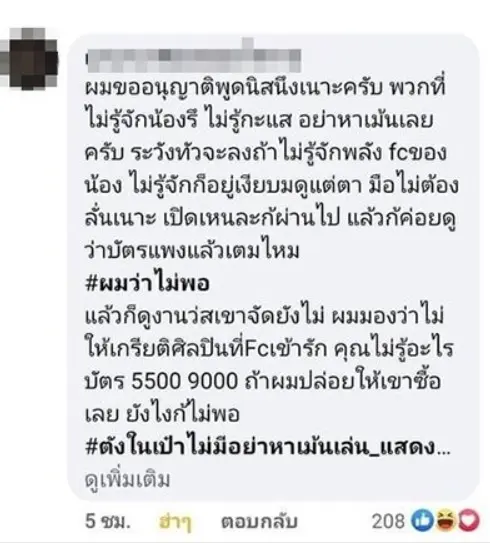 ตามที่เป็นข่าว ราคาก็จับต้องได้ เหมือนนักร้องดังทั่วไป เพราะมีค่าบริหารจัดการอื่นๆอีก ที่ต้องถูกหักค่าตัวใว้ราคานี้ ถือว่าเรทปกติ ส่วนที่มีประเด็น ทางแอดมินร้าน ไปคอมเม้นไม่ดี เขาก็ได้ออกมาโพสต์ ขอโทษแล้ว”