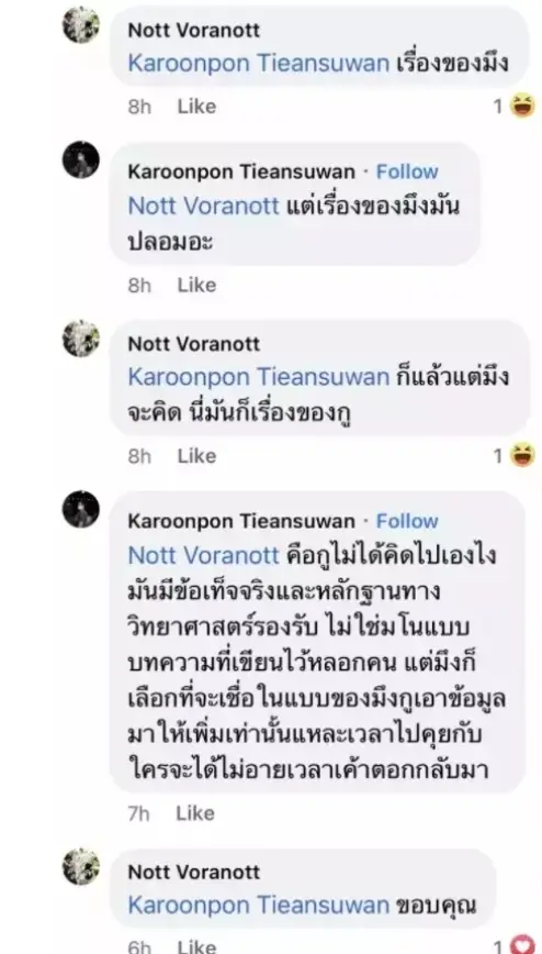 น็อต วรฤทธิ์ : เฟซบุ๊กที่ผมเล่นมันเป็นไพรเวท (ส่วนตัว) ตอนนี้เรากำลังอยู่ในสงครามที่ต่อสู้กับเชื้อไวรัส ศัตรูของเราคือไวรัส ไม่ใช่พวกเรากันเอง