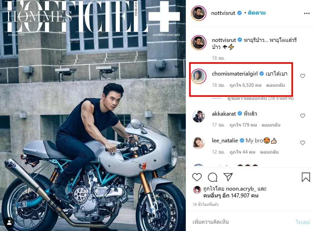 อย่างไรก็ตาม ด้านภรรยาสาวอย่าง ชมพู่ อารยา ก็ได้เข้ามาเเซวในอินสตาแกรมส่วนตัวของ น็อต วิศรุต ด้วยว่า “เบาได้เบา” งานนี้ทำเอาเเฟนคลับต่างอมยิ้ม
