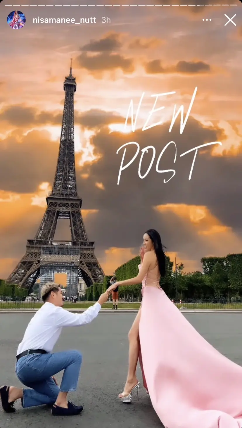 จากกรณีที่อินฟลูเอนเซอร์สาวชื่อดัง นัท นิสามณี ได้โพสต์ภาพขณะที่แฟนหนุ่มกำลังคุกเข่าเพื่อทำอะไรบางอย่าง โดยมีฉากหลังเป็นความคลาสสิกของหอไอเฟล ยิ่งดูยิ่งเสริมความโรแมนติกได้เป็นอย่างดี