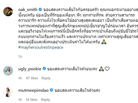ล่าสุด หมอโอ๊ค สมิทธิ์ อารยะสกุล ก็ได้ออกมาโพสต์ข้อความอาลัยถึงหมอกระต่าย พร้อมเตือนผู้ขับรถใช้ถนนให้ระวังถึงปัญหานี้อีกด้วยว่า