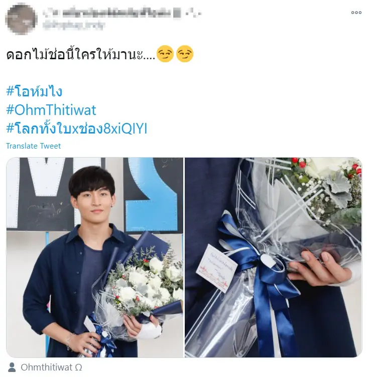 ล่าสุด หนุ่มโอห์มได้ไปออกงานบวงสรวงและแถลงข่าว ‘โลกทั้งใบให้นายคนเดียว เดอะซีรีส์’ ซึ่งก็บอกเลยว่าปังกันตั้งแต่ยังไม่ออกฉายเลยทีเดียว แต่งานนี้แม้ว่าน้องฟลุ้คจะไม่ได้มาร่วมรับบทในซีรีส์เรื่องนี้ร่วมกับพี่โอห์ม แต่เจ้าแก้มก้อนของเราก็ไม่พลาดที่จะส่งความรักมาให้พี่โอห์มกันถึงในงาน โดยในคราวนี้ส่งตัวแทนมาเป็นช่อดอกกุหลาบสีขาวช่อโตที่ส่งมาเซอร์ไพรส์คนพี่ งานนี้บอกเลยว่ามีเซอร์ไพรส์อีกอย่างเป็นการ์ดที่แนบมากับช่อดอกไม้ ที่เขียนข้อความชวนกรี๊ดสุดฟินไว้ว่า “ยินดีกับพี่โอห์มด้วยนะครับ พระเอกคนเก่ง” ซึ่งเจ้าตัวก็ไม่ลืมที่จะลงชื่อตัวเองไว้ด้วยว่า “น้องฟลุ้ค”