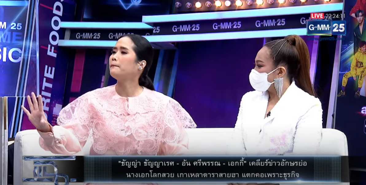 จากนั้นพิธีกรก็ได้ถามต่อว่าอะไรที่มันไม่จริง อ้น ศรีพรรณ ก็ได้ตอบว่า ‘ตีกันเพราะธุรกิจ เราไม่ได้เอาเงินมาลงทุนกัน เราไม่ได้แตกกันอย่างที่คนพูดว่า ใช่สิ พี่น้องกันยังตีกันเพราะทำธุรกิจเลย เพื่อนกันก็ตีกัน ไม่ใช่ อันนี้ถ้าอยากจะเอาไปเมาท์ไม่ต้องเมาท์ประเด็นนี้เลย ไม่ได้ทำธุรกิจด้วยกัน เราไม่ได้เอาเงินมาลงด้วยกัน‘