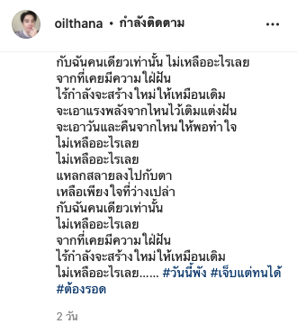 ไม่ว่าจะเป็นการที่ฝ่ายชายโพสต์ข้อความคล้ายคนกำลังเศร้า หรือเหมือนกำลังตัดพ้อผ่านไอจีส่วนตัวอยู่หลายครั้ง