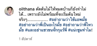 แต่ที่ทำเอาใครหลายคนตั้งข้อสงสัย ออย ธนา กดเลิกติดตามไอจีของภรรยา เช่นเดียวกันกับฝ่ายหญิง ซึ่งเรื่องนี้ได้สร้างความสงสัยให้กับแฟนๆ เป็นอย่างมาก ขณะที่หลายคนก็เริ่มเข้าไปคอมเมนต์ถามไถ่นักร้องนักแสดงหนุ่มอยู่เป็นระยะว่า เกิดอะไรขึ้นหรือเปล่า? พร้อมกับเขียนข้อความให้กำลังใจ