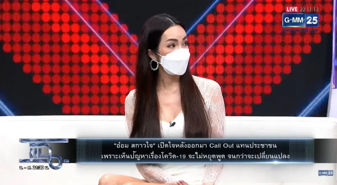 จากที่ก่อนหน้านี้มักจะเห็นดารา เน็ตไอดอล ออกมา Call Out ประเด็นโรคระบาดกันในโลกโซเชียลอย่างมากมาย ทำเอารายการแฉ ถึงกับต้องเชิญมาร่วมรายการเลยทีเดียว ไม่ว่าจะเป็น นารา เครปกะเทย ,หมอของขวัญ ,หมอริท ล่าสุดเมื่อคืนนี้ อ๋อม สกาวใจ เป็นอีกหนึ่งคนที่ออกมา Call out ผ่าน Instagram อยู่บ่อยครั้ง ได้เข้ามาร่วมให้สัมภาษณ์ในรายการแฉ ครั้งนี้ด้วย