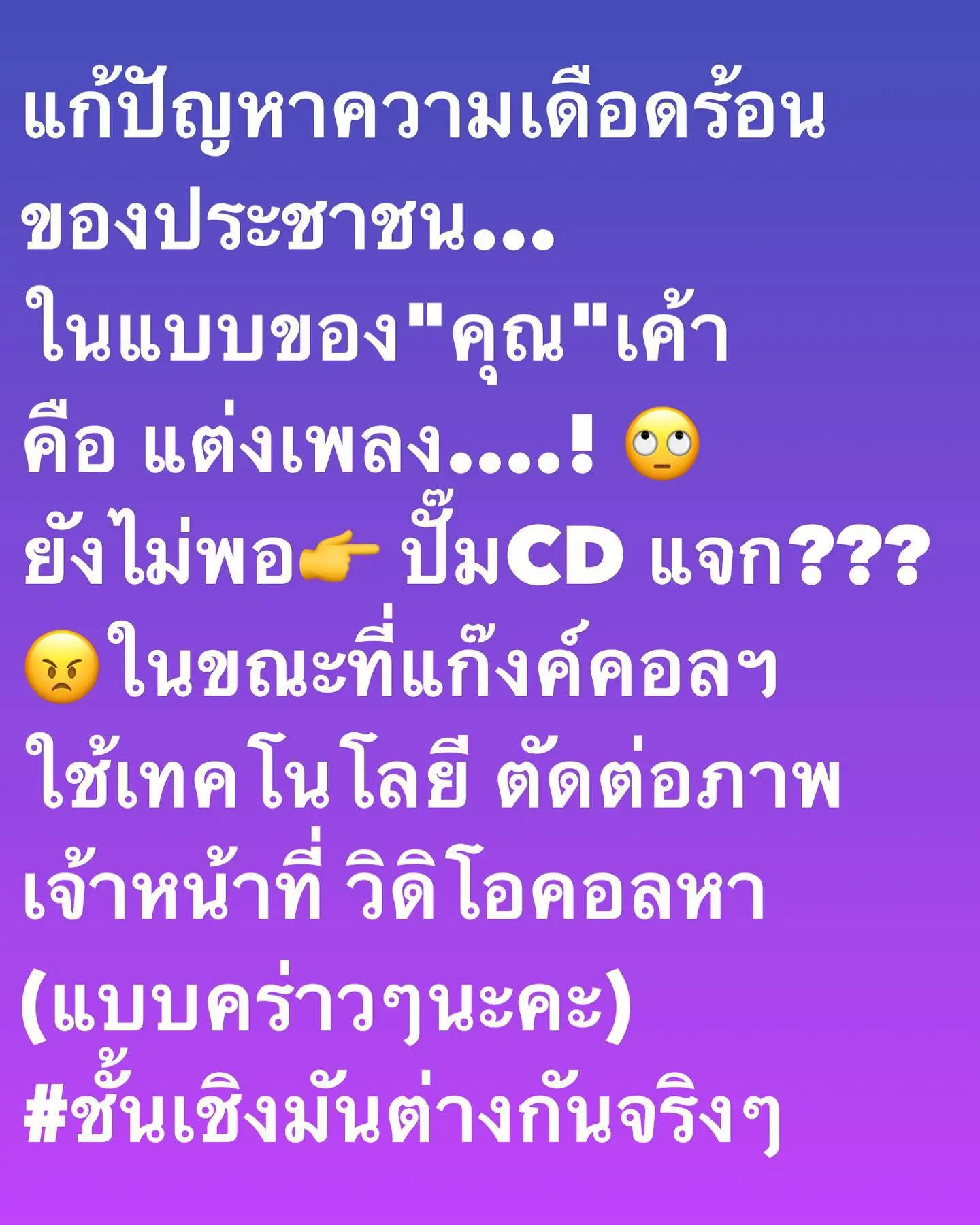เกิดเสียงวิจารณ์อย่างมากถึงการแก้ปัญหาที่ไม่ตรงจุดของรัฐบาล รวมถึงทางด้านของ อ๋อม สกาวใจ ก็เช่นกัน ที่เจ้าตัวนั้นออกมาตั้งคำถามถึงการทำงานของภาครัฐอยู่เกือบจะทุกวัน โดยในครั้งนี้ก็ได้มีการเปรียบเทียบการทำงานของรัฐบาลและแก๊งคอลเซนเตอร์ ที่ดูเหมือนขั้นเชิงจะต่างกัน ฝั่งหนึ่งแต่งเพลงรณรงค์พร้อมปั๊มแผ่นCDแจก ในขณะที่เทคโนโลยีในยุคปัจจุบัน แทบจะไม่มีใครใช้แผ่นCDกันแล้ว ส่วนอีกฝั่งหนึ่ง มีการตัดต่อภาพ คลิปวิดีโอต่าง ๆ เพื่อใช้ในการหลอกคนให้สมจริงมากยิ่งขึ้น