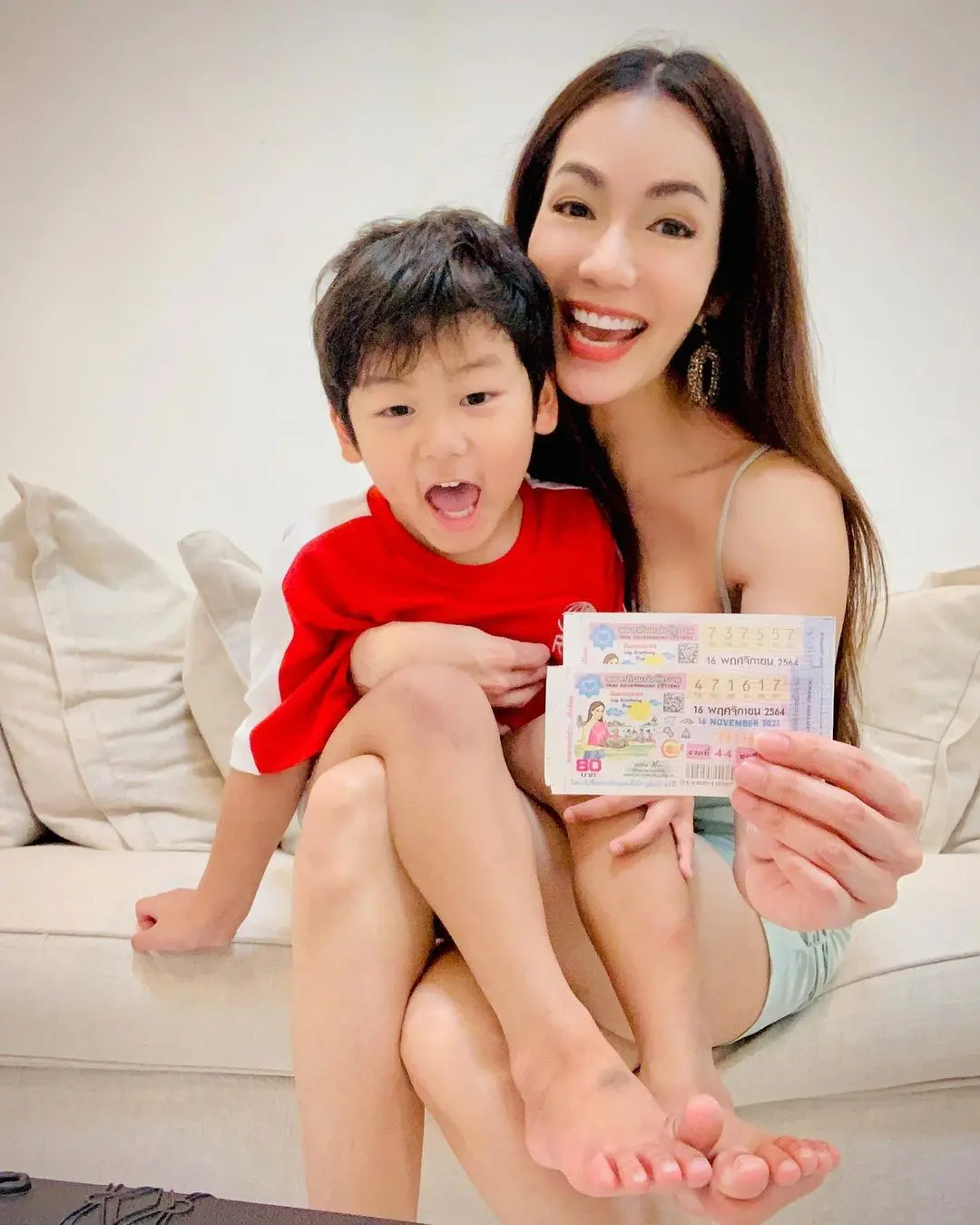 ผลก็เป็นไปตามคาดซึ่งงวดล่าสุดอย่าง 16 พ.ย. 2564 เธอก็ได้ออกมาโพสต์ข้อความพร้อมรูปคู่กับลูกชายอย่างแฮปปี้ หลังออกมาประกาศข่าวกันอีกงวดว่าเธอถูกโชครางวัลใหญ่ ทั้งนี้เธอก็ได้ออกมาระบุข้อความไว้อีกว่า