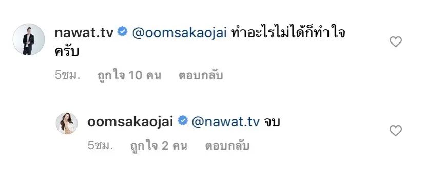 ด้านณวัฒน์เองก็ได้เข้ามาคอมเมนต์ว่า “ทำอะไรไม่ได้ ก็ทำใจครับ”