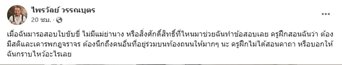 ทิดเอก ไพรวัลย์ อดีตพระชื่อดัง เข้าสอบใบขับขี่ครั้งแรกหลังใช้ชีวิตแบบฆราวาส ลั่น! ไม่มีแม่ย่านางหรือสิ่งศักดิ์สิทธิ์ช่วยทำข้อสอบ ครูฝึกไม่ได้ให้ท่องคาถาหรือให้กราบไหว้อะไร
