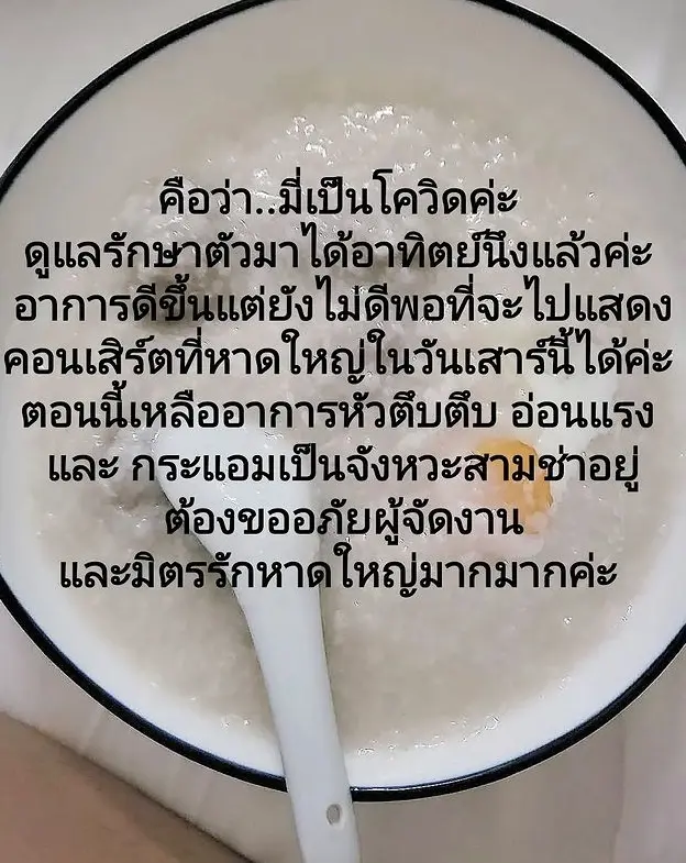 คือว่า..มี่เป็นโควิดค่ะ ดูแลรักษาตัวมาได้อาทิตย์นึงแล้วค่ะ อาการดีขึ้นแต่ยังไม่ดีพอที่จะไปแสดงคอนเสิร์ตที่หาดใหญ่ในวันเสาร์นี้ได้ค่ะ ตอนนี้เหลืออาการหัวตึบตึบ อ่อนแรง และ กระแอมเป็นจังหวะสามช่าอยู่ ต้องขออภัยผู้จัดงาน และมิตรรักหาดใหญ่มากมากค่ะ
