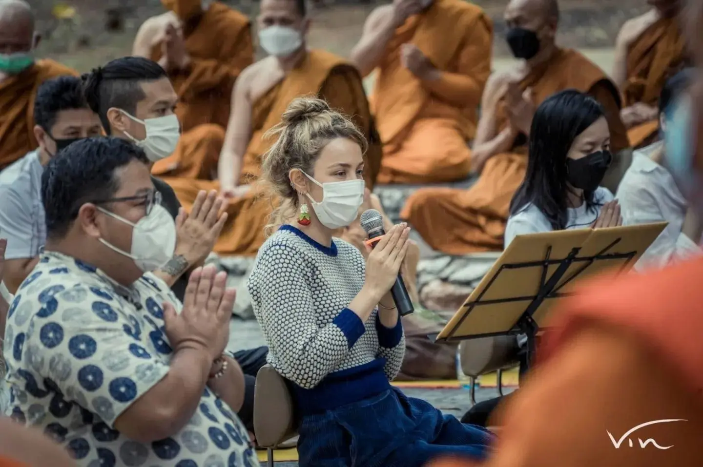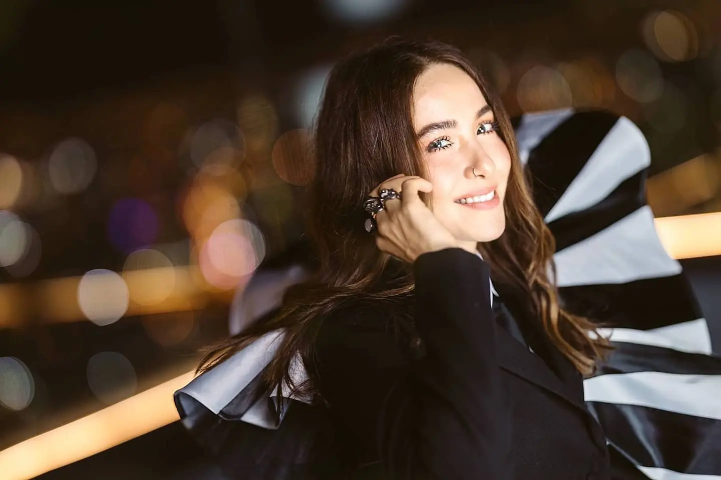 แต่ทันใดนั้นเองก็ทำเอาบรรดาแฟนๆแห่เข้ามาส่องแฟชั่นต่างหูของเธอที่มีรูปร่างเป็นพวงมาลัย เข้ากับบรรยากาศงานบุญเป็นอย่างมาก พร้อมที่จะแย่งซีนเจ้าของชุดกันเลยทีเดียว