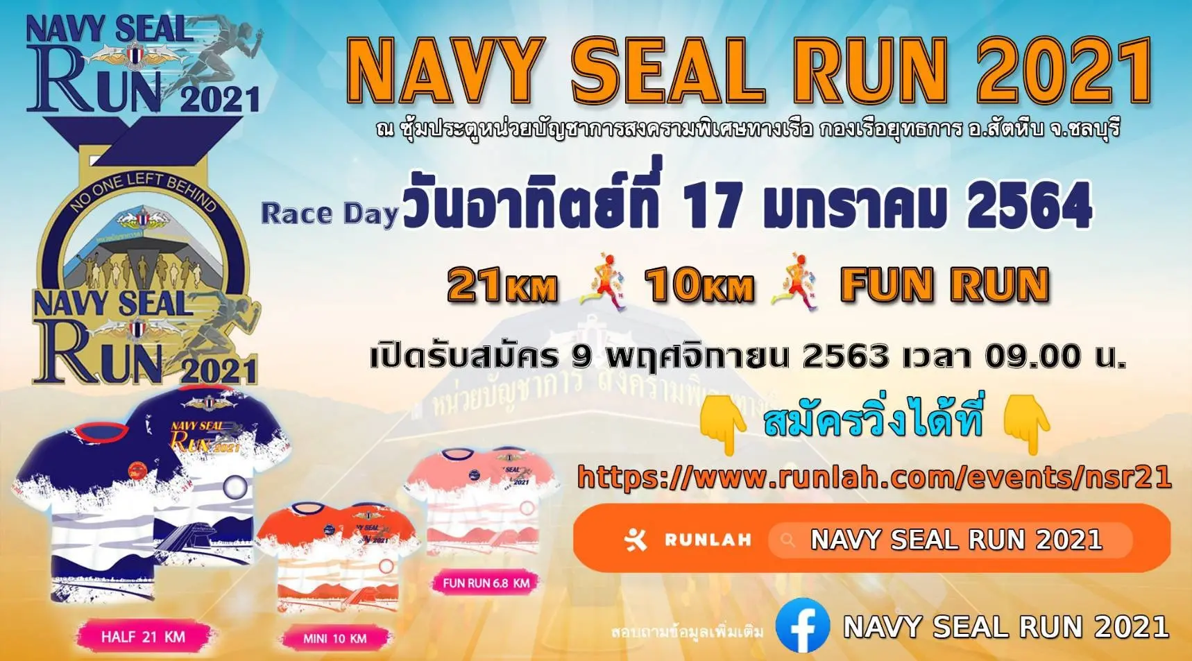“แพนเค้กขอชวนทุกคนมาวิ่งกันเพื่อสุขภาพในปีหน้า เตรียมตัวให้พร้อมกับอีกหนึ่งรายการวิ่งเพื่อสุขภาพกับกองทัพเรือ ที่จะมีบรรดาซีลและเจ้าหน้าที่ดูแลอย่างดี พร้อมที่จะคุ้มครองนักวิ่งทุกท่าน เพื่อนำทุกท่านไปสู่เส้นชัยพร้อมกัน มีหลายระยะทางให้เลือกสมัครนะ แล้วมาวิ่งไปด้วยกันนะคะ ในวันอาทิตย์ที่ 17 ม.ค.64 ยังเปิดรับสมัครอยู่นะคะ ทางเพจ Navy SEAL Run หรือทาง www.runlah.com/events/nsr21 แล้วเจอกันนะคะ”