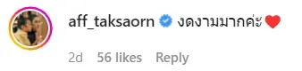 ซึ่งทันทีที่เธอได้ออกมาเปิดภาพความสวยความแพงให้แฟน ๆ ได้ชมกันนั้น เหล่าบรรดาเพื่อนคนบันเทิงต่างก็ได้เข้ามาคอมเมนต์กันเต็มไอจีกันแบบไม่มีพักเลยทีเดียว ขณะเดียวกันด้าน แอฟ ทักษอร ก็ได้เข้ามาคอมเมนต์ในภาพดังกล่าวเช่นกันพร้อมกับการันตีความแพงของ แพนเค้ก ในครั้งนี้ว่า งดงามมากค่ะ❤️