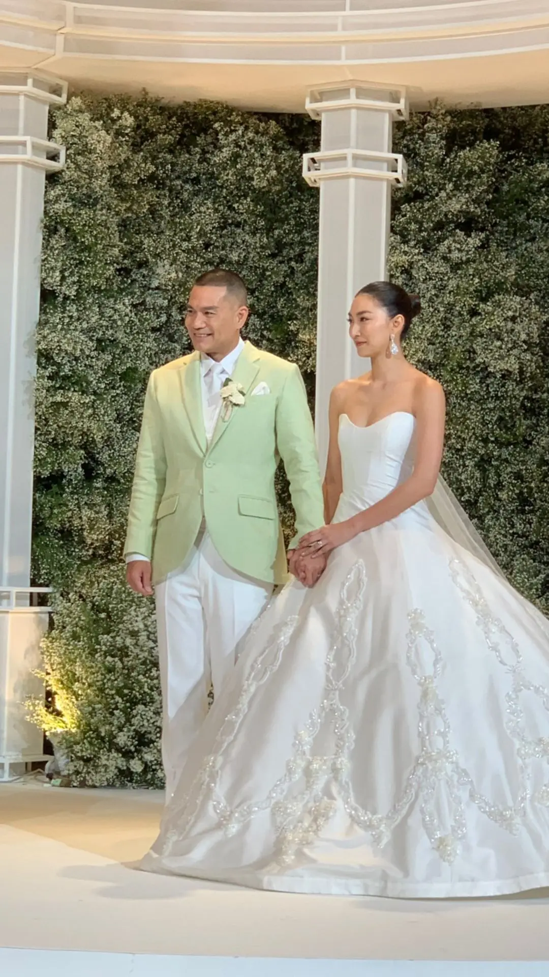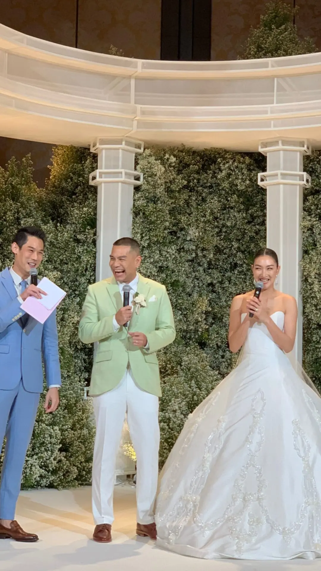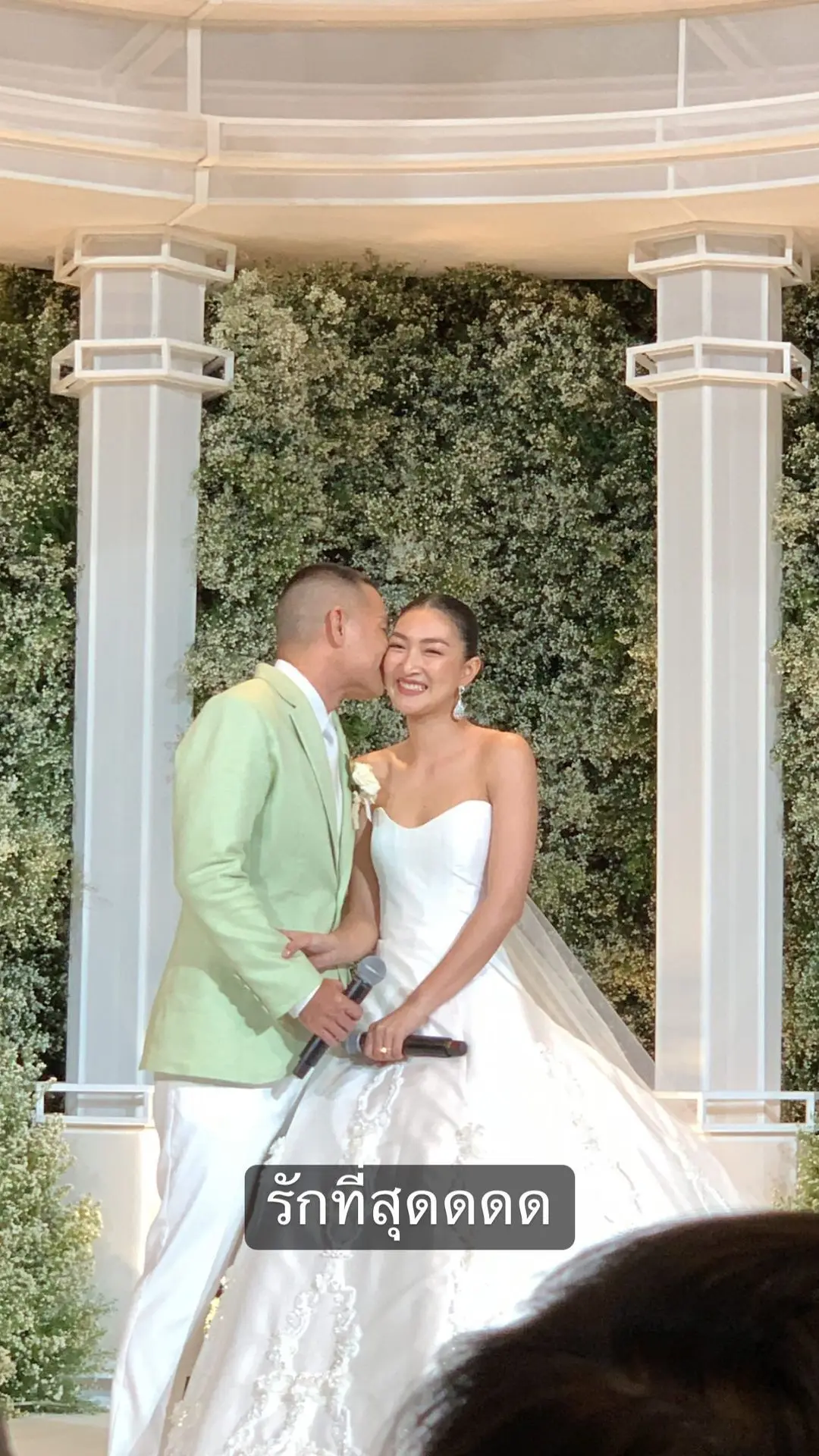 งานนี้บรรดาเพื่อน ๆ คนบันเทิงต่างเดินทางไปร่วมพิธีวิวาห์กันแบบคลับคลั่งในท่ามกลางบรรยากาศสุดอบอุ่นชื่นมื่น อีกทั้งเจ้าบ่าว-เจ้าสาวในงานยังสวยหล่อออร่ากระจายไปทั้งงานเลยจริง ๆ