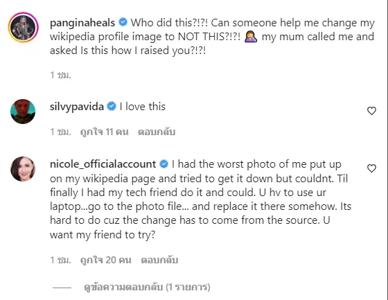 จนมีทางด้านของ นิโคล เทริโอ ได้เข้ามาบอกกับปันปันว่า ตัวเองก็เคยมีรูปภาพสุดแย่ในวิกิพีเดียเหมือนกัน และวิธีการแก้ไข้ก็ทำได้ยาก จนต้องให้เพื่อนที่เชี่ยวชาญด้านเทคนิดมาช่วยเปลี่ยนจนได้ในที่สุด