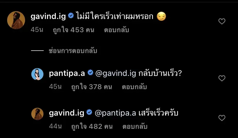โดยสาวปุ้มปุ้ย ก็ได้มีการตอบกลับไปว่า “กลับบ้านเร็ว” จากนั้นด้านสามีก็ได้ตอบกลับทิ้งท้ายด้วยข้อความว่า “เสร็จเร็วครับ” บอกเลยทำเอาฮากันทั้งอินสตาแกรม