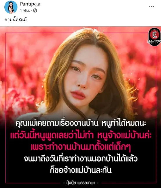 ปุ้มปุ้ย พรรณทิพา ออกมาแชร์โพสต์ทัศนคติปัง ๆ กับคำตอบของลูกสะใภ้ยุคใหม่ หลังแม่สามีเคยถามเรื่องทำงานบ้าน