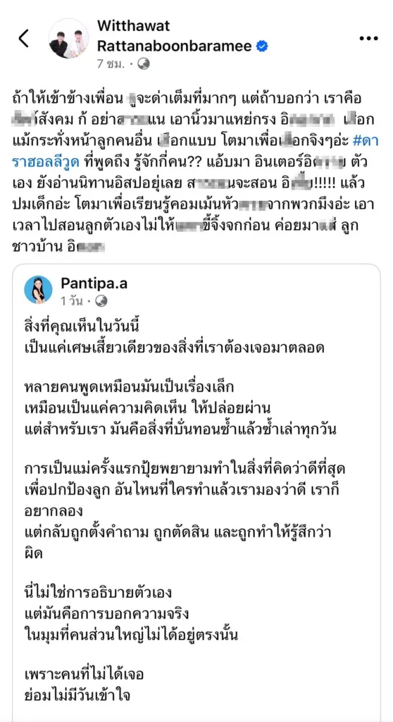 กระแสดราม่าเรื่องการเปิด–ปิดหน้าลูกของ “ปุ้มปุ้ย พรรณทิพา” กลับมาร้อนระอุอีกครั้ง หลังเจ้าตัวออกมาเปิดเผยข้อความจากชาวเน็ตบางส่วนที่คอมเมนต์แซะและตั้งคำถามกับการเลี้ยงลูกของเธอมาตลอดหลายปี จนกลายเป็นแรงกดดันสะสมในใจของคนเป็นแม่