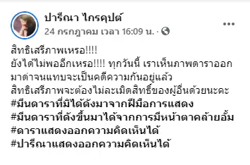 ส.ส.ปารีณา ออกมาเเซะ มิน พีชญา ปมการ Call out ว่าทุกวันนี้ยังได้กันไม่พออีกหรอ ออกมาด่ามีแต่คดีติดตัว แซะอีกว่า ไม่ได้ดังเพราะฝีมือการแสดง แค่เพราะหน้าเหมือน อั้ม