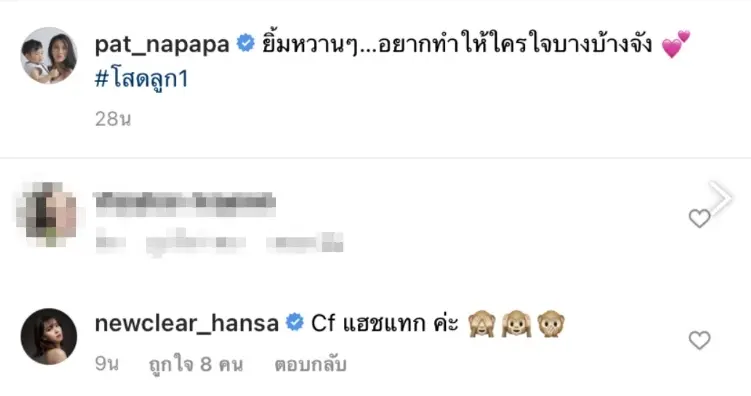 ถึงแม้ว่าจะมีการเปิดตัวกันไปแล้ว แต่ทางด้านของแพทก็ได้มีการโพสต์ภาพในไอจีพร้อมกับแคปชั่นที่ว่า “ยิ้มหวานๆ…อยากทำให้ใครใจบางบ้างจัง” โดยถ้าอ่านตามปกติก็เหมือนแคปชั่นอ้อนๆ ทั่วไป แต่ไฮไลต์อยู่ที่แฮชแท็ก #โสดลูก1 นี้แหละ
