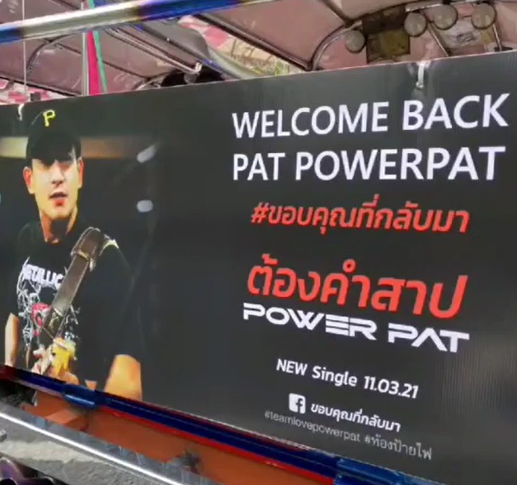 ทางด้านแฟนคลับของหนุ่มแพทนั้นเขาก็เป็นปลื้มกับการออกซิงเกิ้ลใหม่ของแด๊ดดี้แพทกันแบบสุดๆ พากันร่วมลงเงินโดเนทเพื่อขึ้นป้ายท้ายรถตุ๊กๆ ยาวเป็นแถวเพื่อฉลองการกลับมาในครั้งนี้ของเขา ซึ่งงานนี้หนุ่มแพทเขาก็ได้รับรู้กำลังใจนี้จากกลุ่มแฟนๆ เป็นอย่างดี โดยเขาได้มาเขียนคำขอบคุณลงในไอจีของเขาสั้นๆ ว่า “Thanks.#teamlovepowerpat”