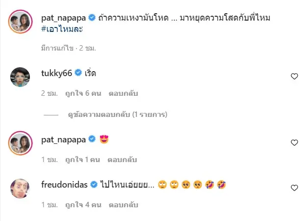 เรียกว่าเป็นโสดมา่ได้สักพักแล้ว แต่ดีกรีความแซ่บไม่มีแผ่วสำหรับ แพท ณปภา ที่เธอมักจะโพสต์ภาพพร้อมแคปชั่นเด็ดๆเสมอ จนหลายคนอดคอมเมนต์ไม่ไหวกันเลยทีเดียว