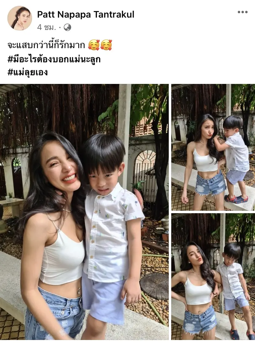 นอกจากนี้เจ้าตัวยังถ่ายภาพคู่กับน้องเรซซิ่ง พร้อมข้อความว่า “จะแสบกว่านี้ก็รักมาก #มีอะไรต้องบอกแม่นะลูก #แม่ลุยเอง”