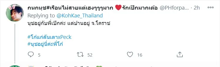 ขึ้นชื่อว่าเป็นนุช จะแผ่วเรื่องการเต๊าะผู้ชายไม่ได้!! เมื่อเหล่าแฟนคลับของนักร้องหนุ่ม เป๊ก ผลิตโชค ร่วมใจกันจีบผ่านแฮชแท็ก #นุชอยู่นี่ค่ะพี่โก๋ จะให้น้อยหน้ากันเป็นไปไปไม่ได้ เมื่อเพจ KohkaeThailand ขนมถั่วลิสงอบกรอบ ที่ เป๊ก ได้เป็น พรีเซนเตอร์อยู่นั้น ได้ออกมาทวีตข้อความว่าต้องการเช็คประชากรชาวนุช ทำให้นุชทุกคนนั้นรีบออกมารีพลายตอบกันอย่างมากมาย เรียกได้ว่าแฟนคลับหนาแน่นเต็มพื้นที่เลยทีเดียว