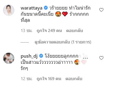 งานนี้คนรีวิวน่ารักจนคนพากันเข้ามาชมไม่ขาดสายเลยทีเดียว ทั้งสาว ริต้า ศรีริต้า, ณิชา ณัฏฐณิชา รวมไปถึงคู่ ดีเจพุฒ และ จุ๋ย วรัทยา ที่เข้ามาคอมเมนท์ใต้โพสต์ ว่า