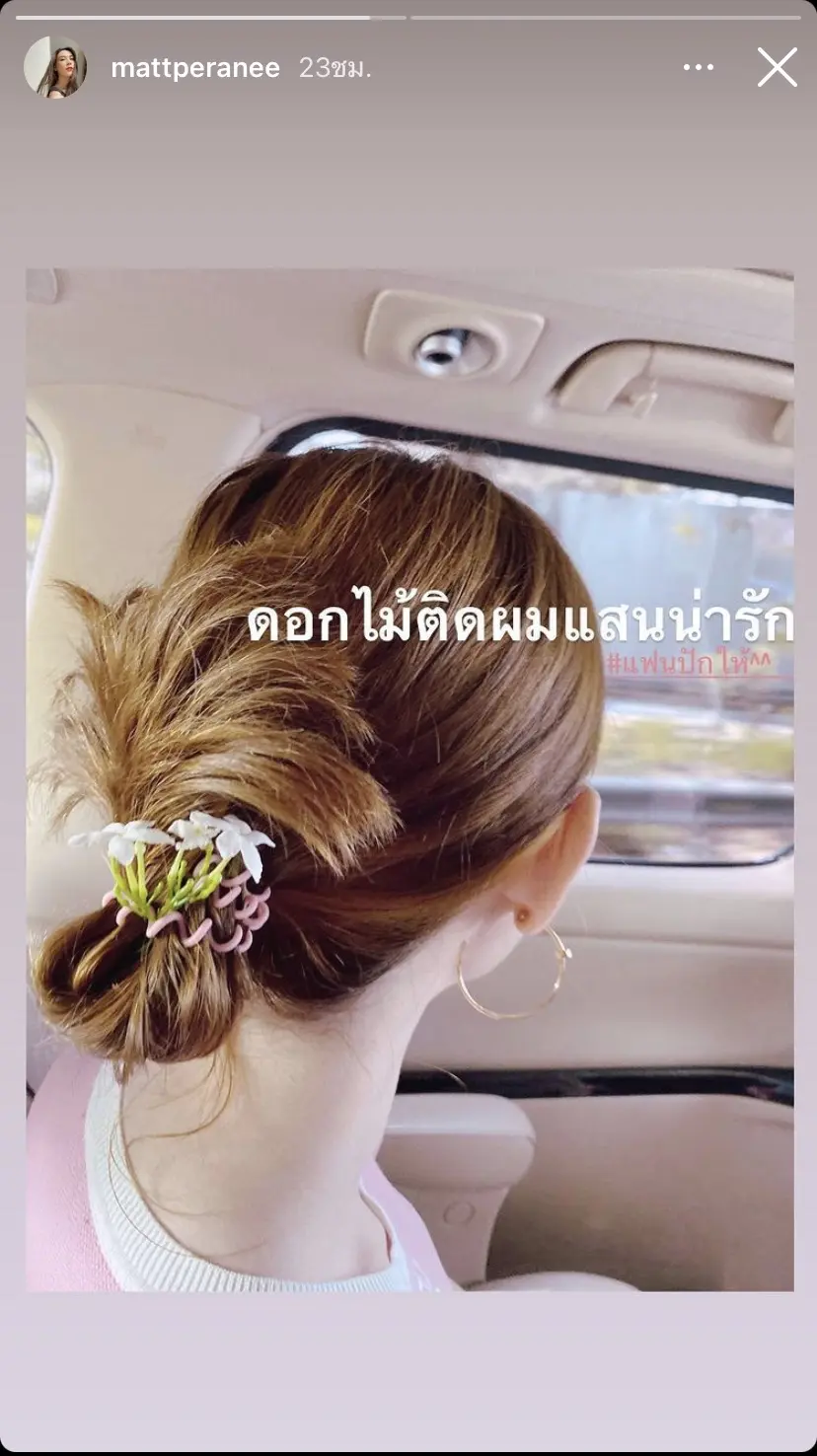 โมเมนต์น่ารักมาเต็ม เมื่อ แมท ภีรนีย์ ได้ออกมาโพสต์ภาพลงสตอรี่อินสตาแกรม ที่เจ้าตัวมีดอกไม้ดอกเล็กๆมาคิดไว้ที่หัวแสนน่ารัก