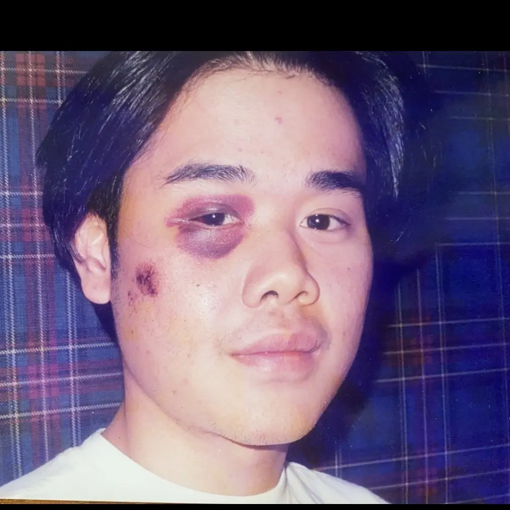 ซึ่งภาพดังกล่าวนั้นบอกได้เลยว่า บริเวณขอบตามีรอยช้ำม่วงช้ำเขียว และรอยบาดแผลของลูกผู้ชาย ตามแคปชั่นที่เขาได้ระบุไว้ว่า สมัยวัยรุ่นก็โดนซะยับมาเหมือนกันนะ