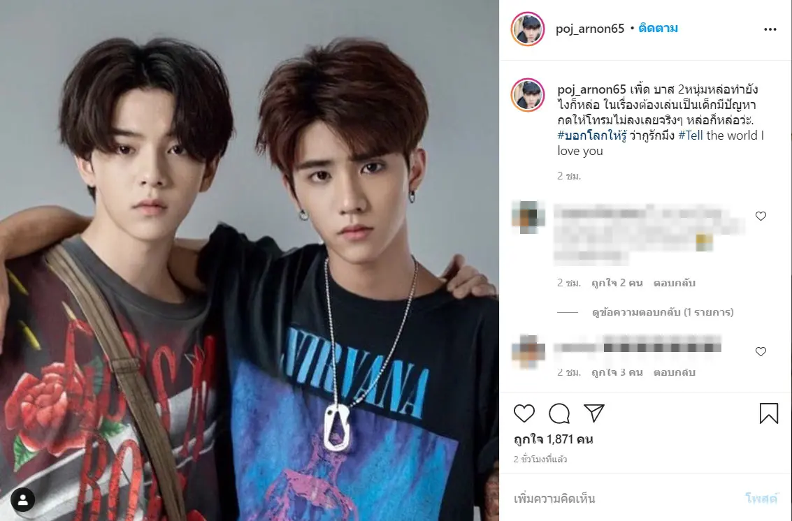 โดยพจน์ อานนท์ ได้ลงรูปมายั่วแฟนคลับ พร้อมสปอยล์หนังและรายละเอียดเล็กน้อย ว่าในภาพยนตร์เรื่อง ‘บอกโลกให้รูู้ ว่ากูรักมึง’ เพิร์ธ-บาส จะมารับบทเด็กมีปัญหา แต่ดูเหมือนว่า พชร์ อานนท์ ก็มีปัญหาเช่นกัน เพราะสองหนุ่มนั้นหน้าตาดีจนทำให้ดูโทรมไม่ได้เลยจริงๆ