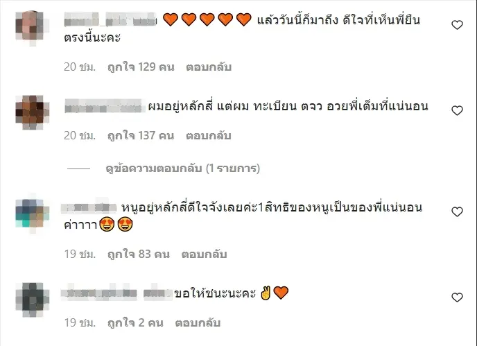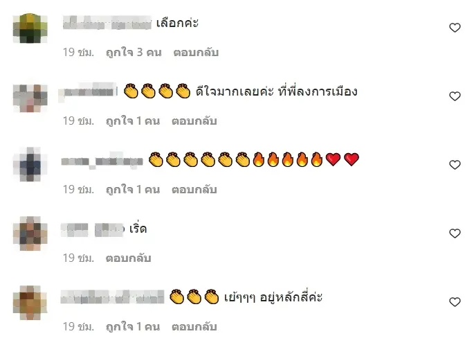 เสียงส่วนใหญ่ในโลกโซเชียลต่างก็ชื่นชมในความชัดเจนของนักแสดงหนุ่ม ที่เลือกที่จะมาลงสนามเลือกตั้งในครั้งนี้อย่างจริงจัง พร้อมกับเตรียมการสนับสนุนอย่างเต็มที่ บางส่วนก็บอกว่าอยากให้มาลงที่เขตบ้านของตัวเองเช่นกัน และมีบางส่วนที่ถึงขั้นอยากจะย้ายทะเบียนบ้านกันเลยทีเดียว