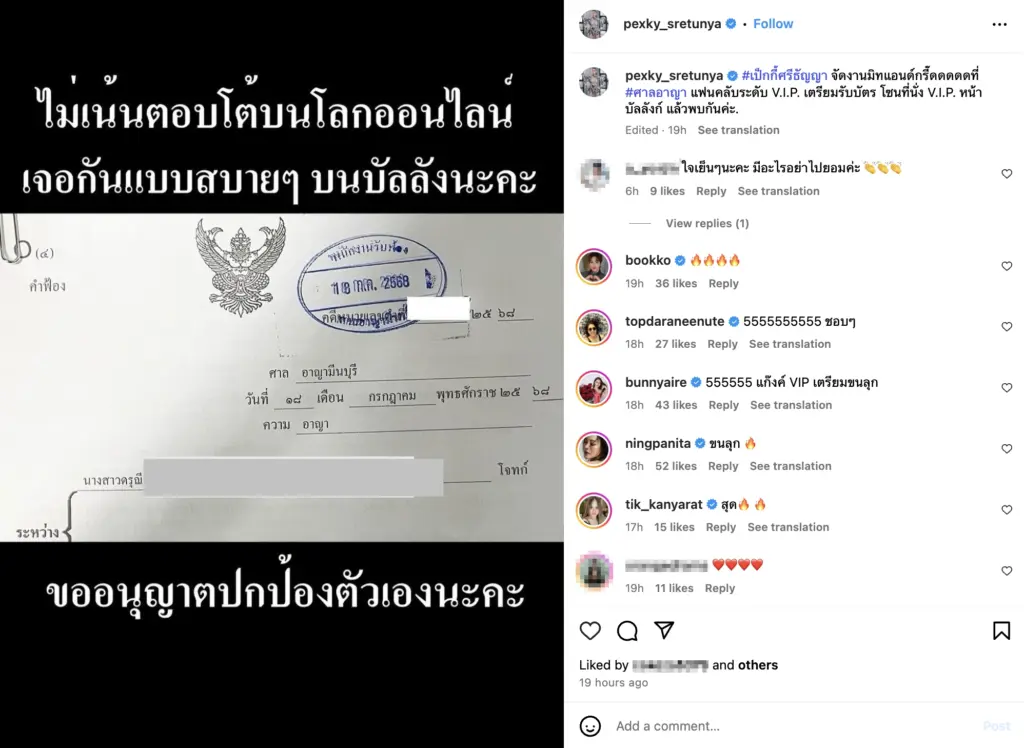 แซ่บไม่ไหว! “เป็กกี้ ศรีธัญญา” นักแสดงและพิธีกรสายฮา โพสต์แรง หลังประกาศดำเนินคดีตามกฎหมาย พร้อมโชว์ภาพคำฟ้องชัดๆ ผ่านอินสตาแกรมส่วนตัว โดยระบุข้อความว่า