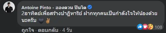 ทั้งนี้ด้านโค้ช #TeamBlack อย่าง อองตวน ปินโต ยังได้มีการมาคอมเมนต์อีกด้วยว่า “2 อาทิตย์เพื่อสร้างปาฏิหาริย์ ฝากทุกคนเป็นกำลังใจให้น้องด้วยนะครับ ![]()