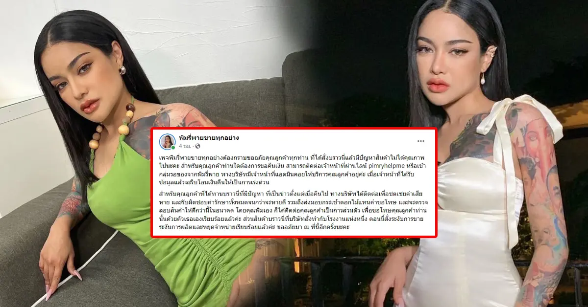 เพจ พิมรี่พายขายทุกอย่าง โพสต์กราบขออภัยทุกคนทุกท่าน หลังมีดราม่าลูกค้าเจอขนมขึ้นรา ยินดีรับผิดชอบและคืนเงินลูกค้า พร้อมสั่งระงับการผลิตและส่งออกของสินค้าที่มีปัญหา