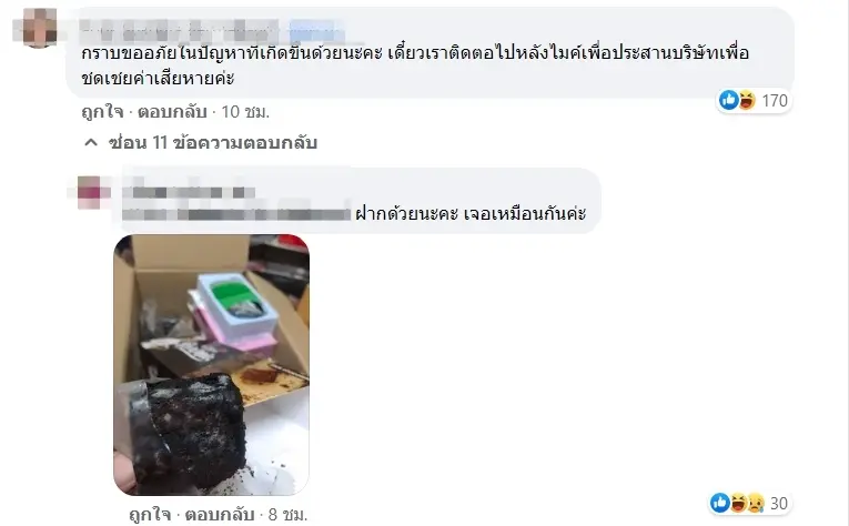 ในโพสต์นี้ก็มีคนเข้ามาแสดงความคิดเห็นกันมากมาย มีหลายคนที่เคยเจอปัญหาแบบเดียวกับผู้โพสต์ จนมีเฟซบุ้กที่อ้างเป็นตัวแทนจากทางบริษัท ได้ติดต่อเข้าทางผู้โพสต์ และได้มีการเสนอความรับผิดในครั้งนี้ให้