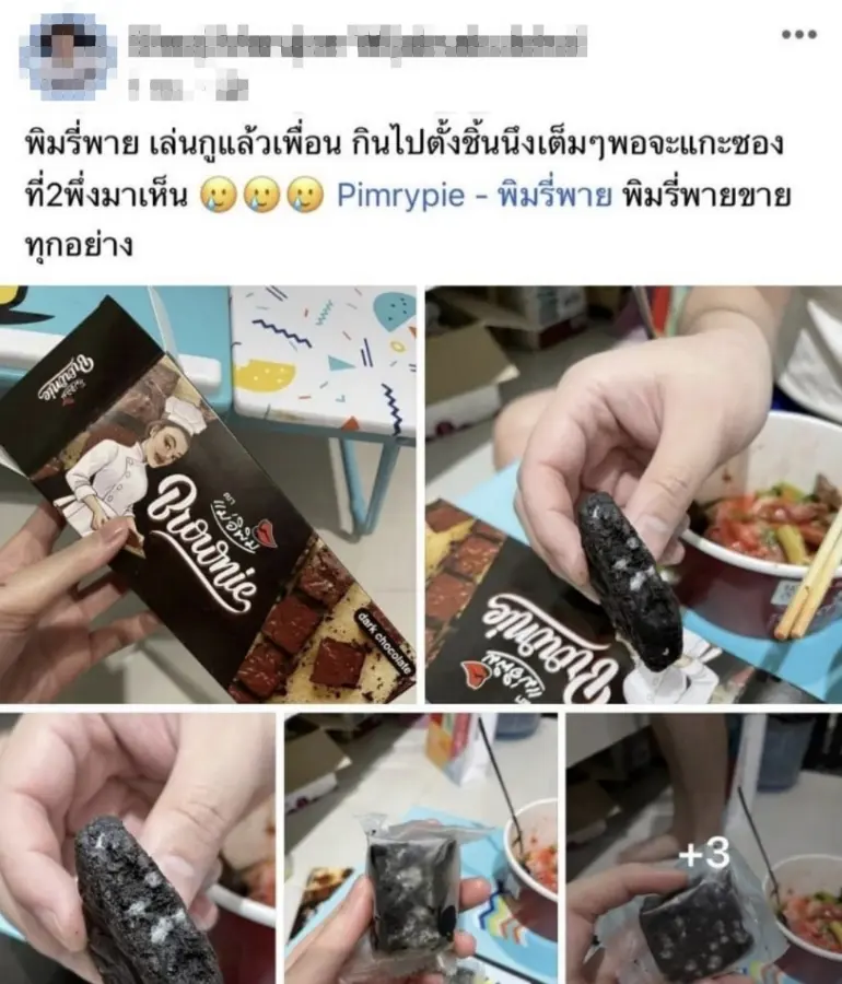 ล่าสุดก็มีผู้ใช้เฟซบุ๊กรายหนึ่ง ออกมาโพสต์ถึงสินค้าที่บอกว่าสั่งมาจาก พิมรี่พาย นั้นก็คือขนมบราวนี่ โดยเจ้าตัวได้โพสต์รูปภาพสินค้า พร้อมกับข้อความที่ว่า “พิมรี่พาย เล่นกูแล้วเพื่อน กินไปตั้งชิ้นนึงเต็มๆพอจะแกะซองที่2พึ่งมาเห็น ![]()